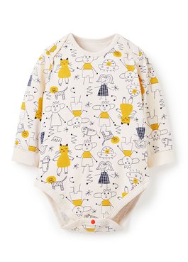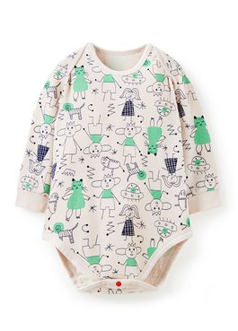 BABY Q彈棉質長袖包屁衣-童趣線條