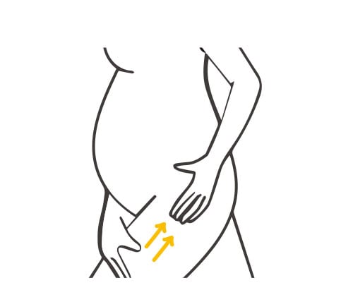 塗於臀部大腿根部,由下往上沿臀部邊緣,按摩至吸收。
