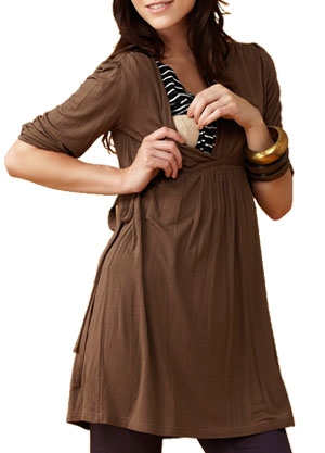 於是,她敗下了今天的秋冬新裝....假2件式孕哺小洋裝,來為將下來的孕期和哺乳做事先準備。