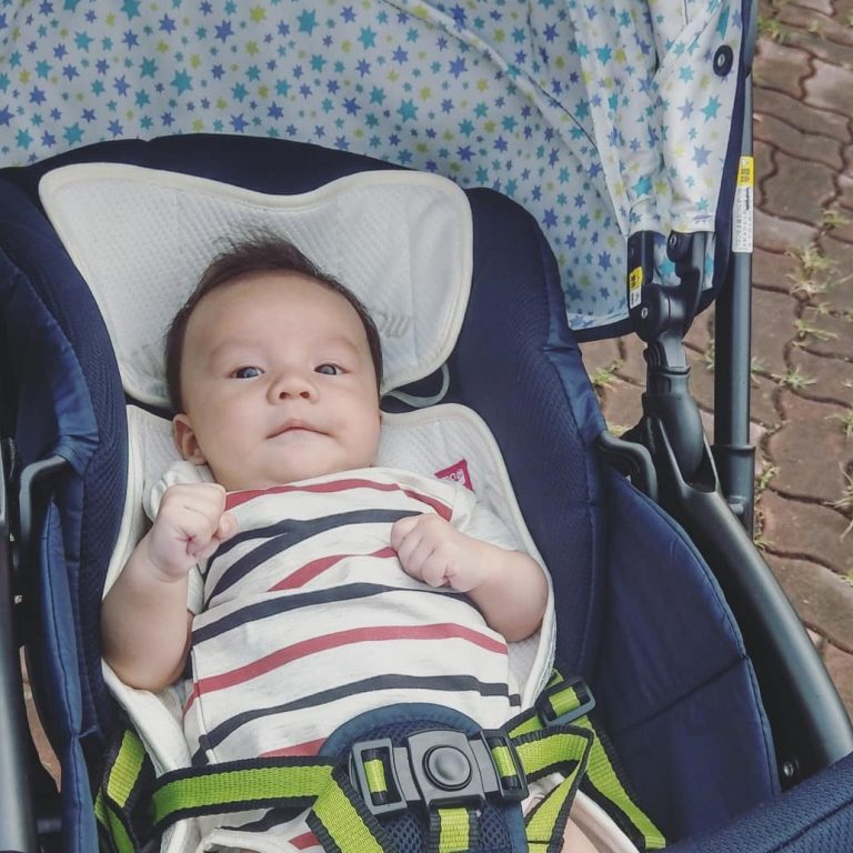 小Dion有新推車坐墊,笑的合不攏嘴啦!