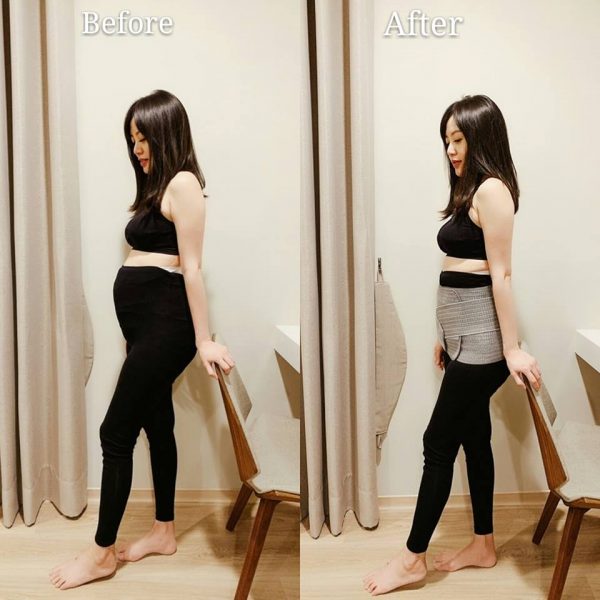 我都是直接接觸皮膚使用,它沒有讓我過敏紅癢耶~皮膚真的很敏感的人也可以穿件內搭衣再使用束腹帶~而且它的彈性無敵好,到月子中心後,每天會有護士來幫我們綁束腹帶,都會拉非常緊(肚子會變超平),但我是想要雕塑又舒服,後來都叫他們不用拉到很緊啦!效果就很明顯了! #照片2 #有比較有差別呢!