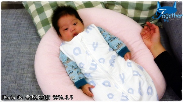 我們熊八是男生於是我拿了米白粉藍(上圖)尺寸是9個月大(但穿起來還是大了不少)