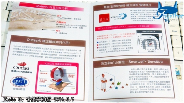 至於【纖立絲】則是以Outlast為主並搭配了【Smartcel Sensitive】(鋅潔淨纖維)